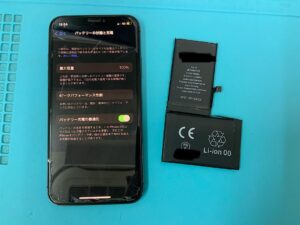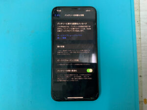 iPhoneXRの修理です。バッテリーの持ちが悪いとの症状でしたが、バッテリー交換で無事に復旧!