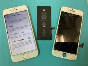 iPhone8Plusの修理です。画面割れ&充電不良との症状でしたが、部品交換で無事に復旧!