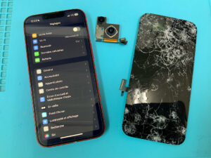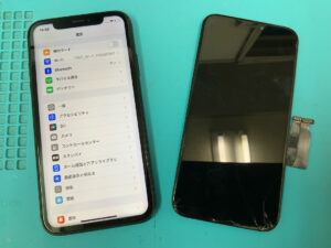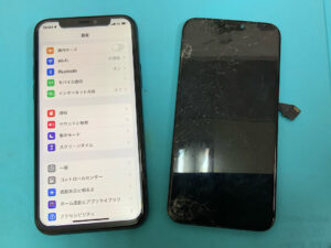 iPhone13の修理です。画面が割れて正常に映らないとの症状でしたが、画面交換で無事に復旧!