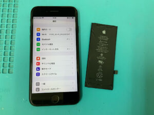 iPhoneSE2の修理です。バッテリーの持ちが悪いとの症状でしたが、バッテリー交換で無事に復旧!