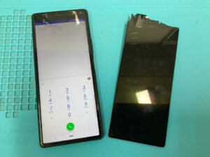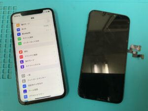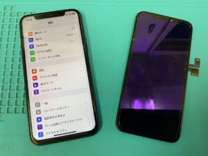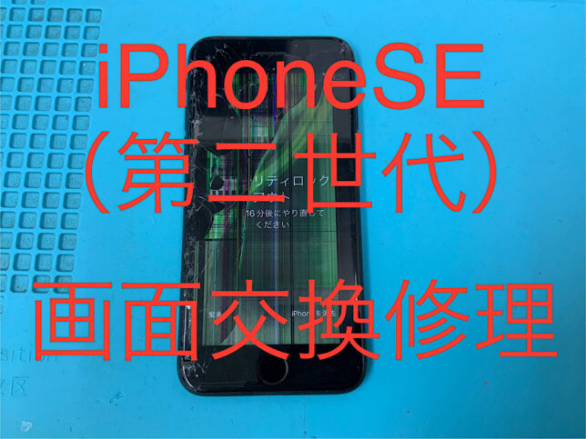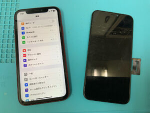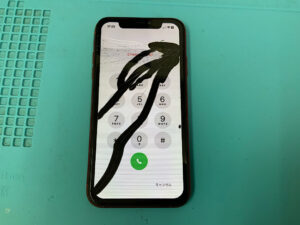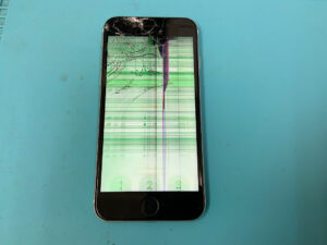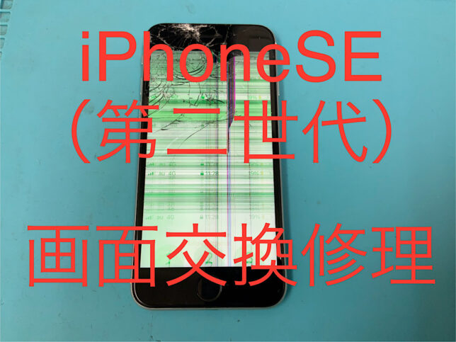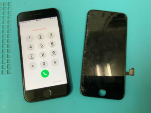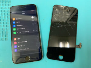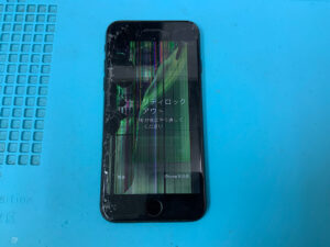iPhoneSE2の修理です。画面割れで正常に映らないとの症状でしたが、画面交換で無事に復旧!