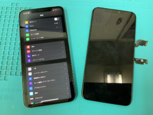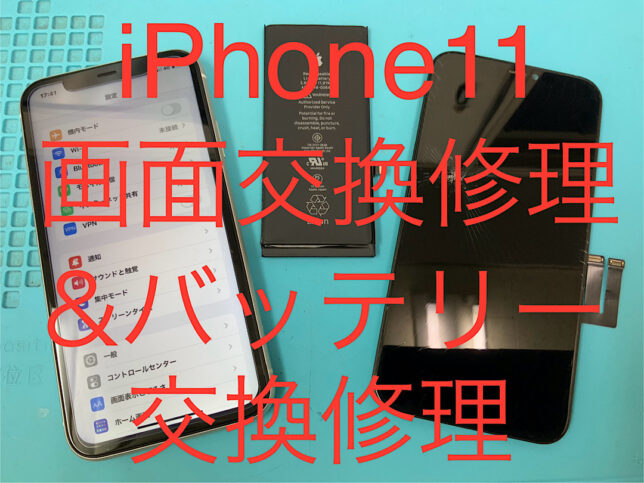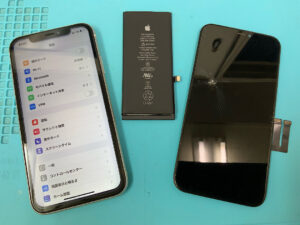 IPhone11の修理です。画面割れ、バッテリー劣化の症状でしたが、部品交換で無事に復旧!