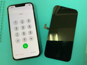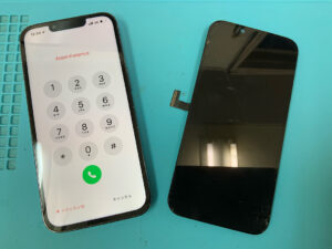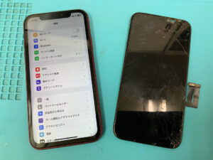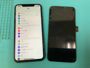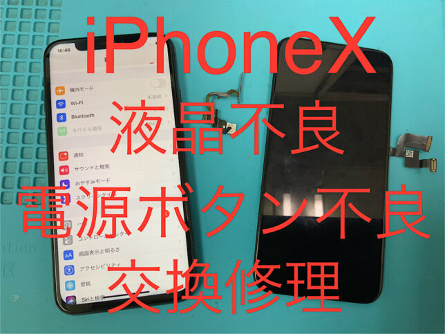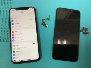iPhoneXの修理です。映像に黒いシミ&電源ボタン不良との症状でしたが、部品交換で無事に復旧!