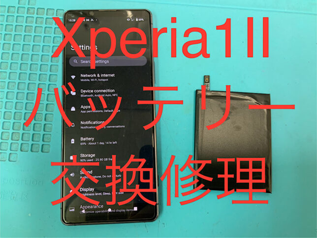 Xperia1Ⅱの修理です。バッテリーの持ちが悪いとの症状でしたが、バッテリー交換で無事に復旧!