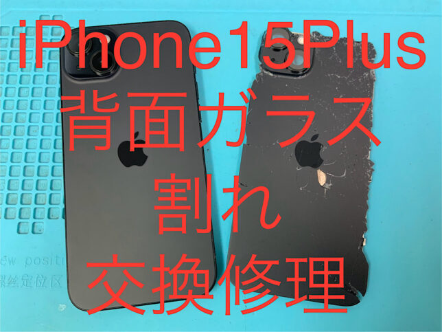 iPhone15Plus 背面ガラス割れ 修理承りました⚒️