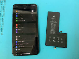 iPhone11ProMaxの修理です。バッテリー劣化との症状でしたが、バッテリー交換で無事に復旧!