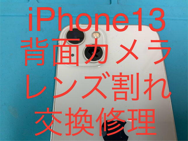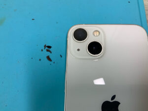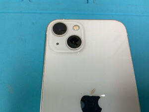 iPhone13の修理です。背面カメラレンズガラスが割れてしまったとの症状でしたが、レンズガラス交換で無事に復旧!