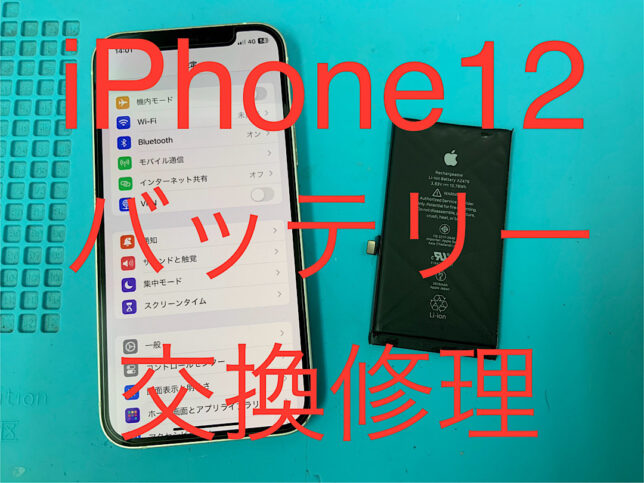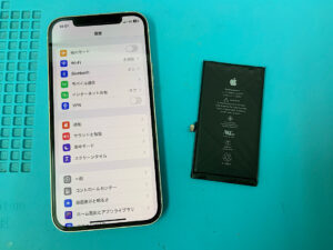 iPhone12の修理です。バッテリー劣化との症状でしたが、バッテリー交換で無事に復旧!