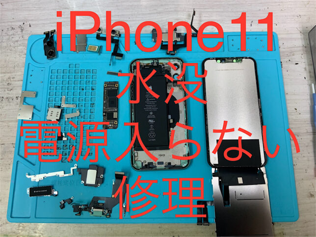 iPhone11の修理です。水没により電源入らないとの症状でしたが、内部クリーニングで無事に復旧!