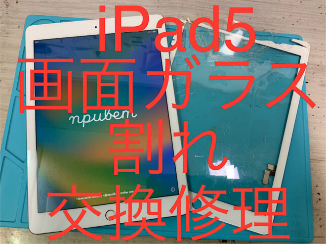 iPad5の修理です。ガラス画面が割れてしまったとの症状でしたが、ガラス画面の交換で無事に復旧!