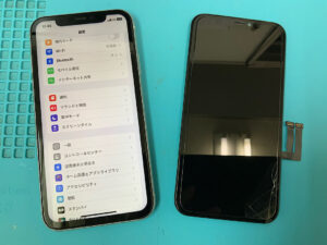 iPhoneXRの修理です。画面が割れて正常に映らないとの症状でしたが、画面交換で無事に復旧!