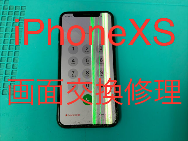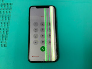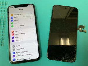 iPhoneXSの修理です。画面が割れて正常に映らないとの症状でしたが、画面交換で無事に復旧!