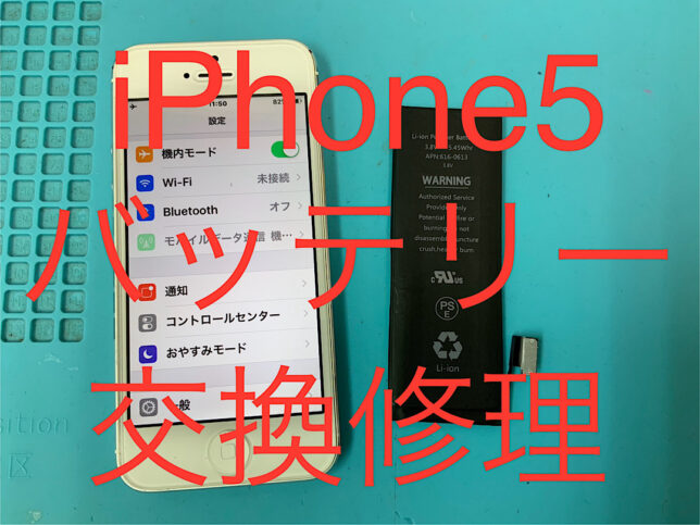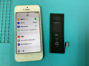 iPhone5の修理です。バッテリー劣化との症状でしたが、バッテリー交換で無事に復旧!