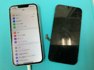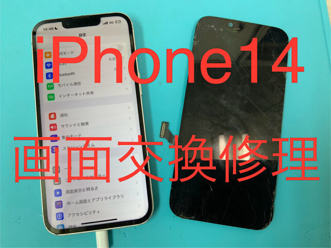 iPhone14の修理です。画面破損との症状でしたが、画面交換で無事に復旧!