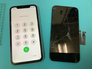 iPhoneXRの修理です。画面破損との症状でしたが、画面交換で無事に復旧!