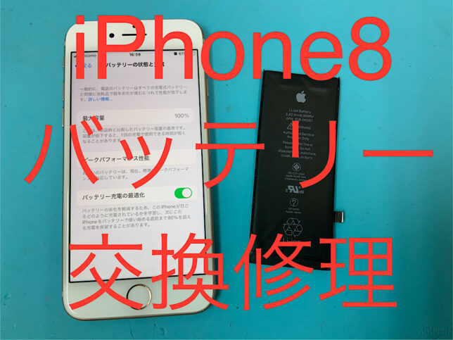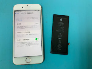 iPhone8の修理です。バッテリー劣化との症状でしたが、バッテリー交換で無事に復旧!