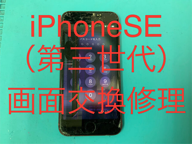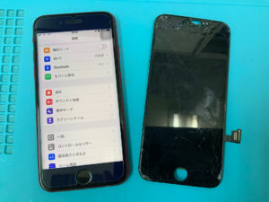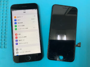 iPhoneSE3の修理です。画面割れで正常に映らないとの症状でしたが、画面交換で無事に復旧!