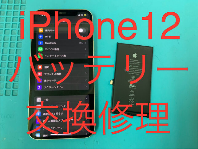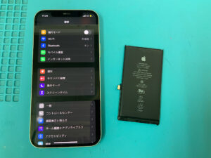 iPhone12の修理です。バッテリー劣化との症状でしたが、バッテリー交換で無事に復旧!