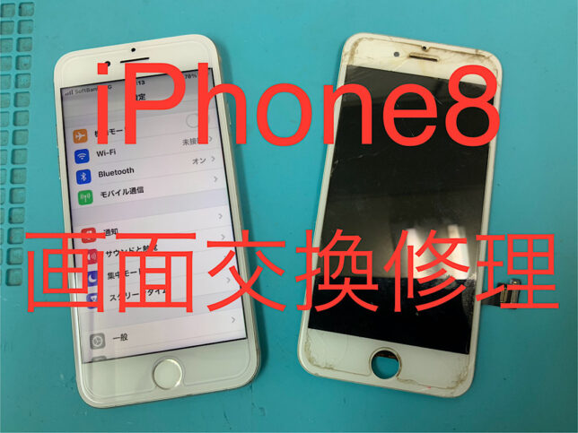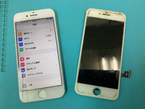 iPhone8の修理です。画面割れでタッチ効かないとの症状でしたが、画面交換で無事に復旧!