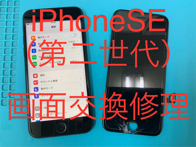 iPhoneSE2の修理です。画面破損との症状でしたが、画面交換で無事に復旧!