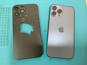 iPhone13ProMaxの修理です。背面ガラスが割れてしまったとの症状でしたが、バックガラスパネル交換で無事に復旧!