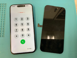 iPhone15ProMaxの修理です。画面割れでタッチ効かないとの症状でしたが、画面交換で無事に復旧!