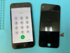 iPhoneSE2の修理です。画面割れで正常に映らないとの症状でしたが、画面交換で無事に復旧!