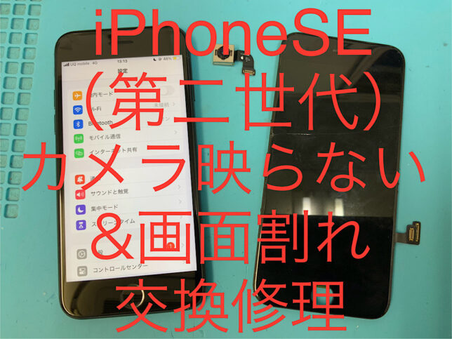 iPhoneSE2の修理です。画面割れ&カメラ映らないとの症状でしたが、部品交換で無事に復旧!