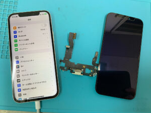 iPhone12の修理です。映らない、充電不良の症状でしたが、部品交換で無事に復旧!