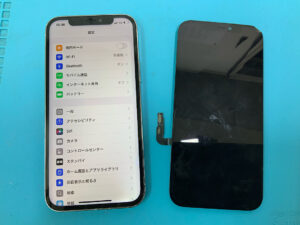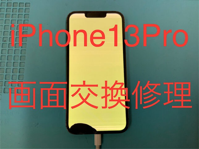 iPhone13Proの修理です。液晶割れで正常に映らないとの症状でしたが、画面交換で無事に復旧!