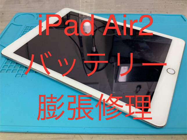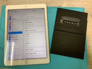 iPad Air2の修理です。バッテリー膨張による画面浮きとの症状でしたが、バッテリー交換で無事に復旧!