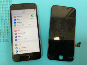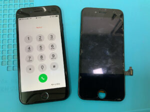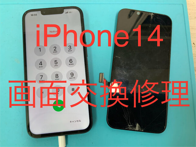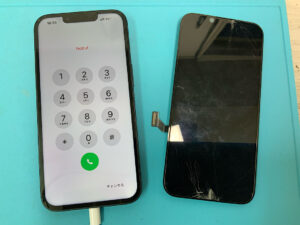 iPhone14の修理です。画面割れでタッチ効かないとの症状でしたが、画面交換で無事に復旧!