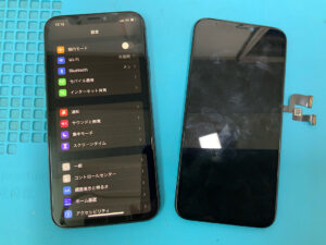 iPhoneXSの修理です。映らない&バッテリー劣化との症状でしたが、部品交換で無事に復旧!