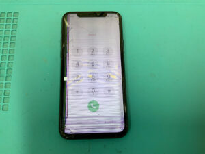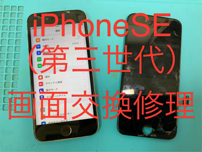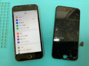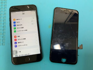 iPhoneSE3の修理です。画面割れで正常に映らないとの症状でしたが、画面交換で無事に復旧!