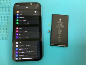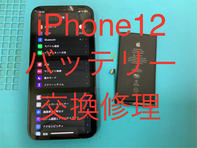 iPhone12の修理です。バッテリーの持ちが悪いとの症状でしたが、バッテリー交換で無事に復旧!