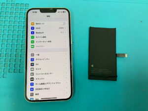 iPhone14の修理です。バッテリーの持ちが悪いとの症状でしたが、バッテリー交換で無事に復旧!