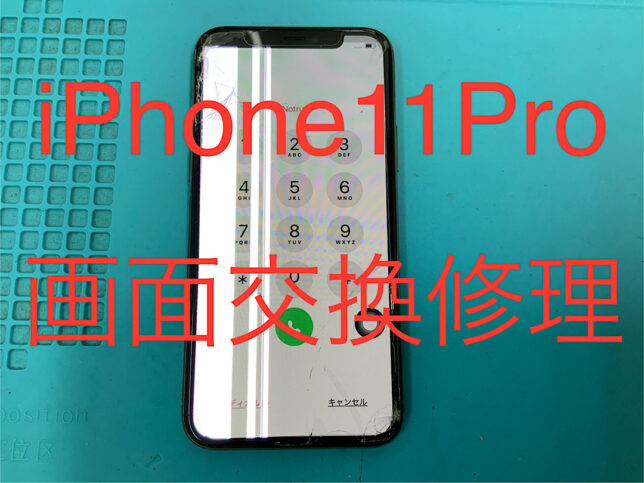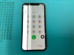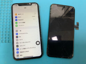 iPhone11Proの修理です。画面割れで正常に映らないとの症状でしたが、画面交換で無事に復旧!
