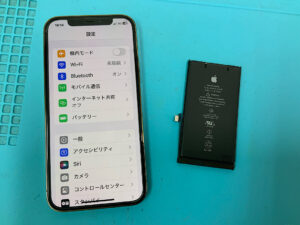 iPhone12Proの修理です。バッテリーの持ちが悪いとの症状でしたが、バッテリー交換で無事に復旧!