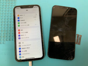 iPhone11の修理です。画面割れで正常に映らないとの症状でしたが、画面交換で無事に復旧!