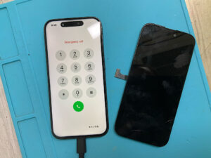 iPhone15Proの修理です。画面割れでタッチ効かないとの症状でしたが、画面交換で無事に復旧!