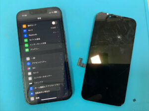 iPhone11Proの修理です。画面割れで正常に映らないとの症状でしたが、画面交換で無事に復旧!