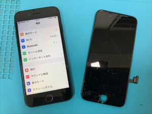 iPhoneSE3の修理です。画面割れでタッチ効かないとの症状でしたが、画面交換で無事に復旧!