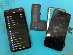 iPhoneXSの修理です。映らない&バッテリー劣化との症状でしたが、部品交換で無事に復旧!