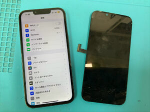 iPhone13Proの修理です。画面割れで正常に映らないとの症状でしたが、画面交換で無事に復旧!