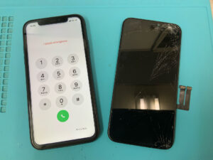 iPhone11の修理です。画面破損との症状でしたが、画面交換で無事に復旧!