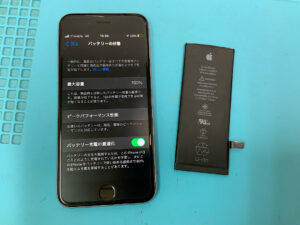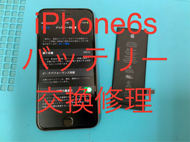 iPhone6sの修理です。バッテリーの持ちが悪いとの症状でしたが、バッテリー交換で無事に復旧!