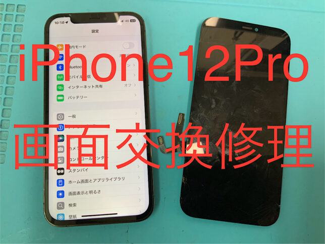 iPhone12Proの修理です。画面が割れてタッチ効かないとの症状でしたが、画面交換で無事に復旧!