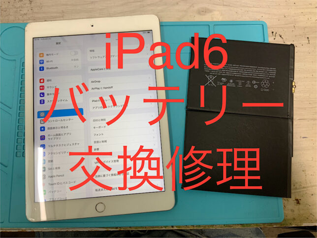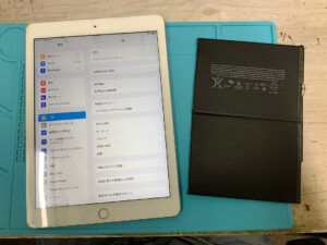 iPad6の修理です。電源入らないとの症状でしたが、バッテリー交換で無事に復旧!