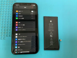 iPhoneXRの修理です。バッテリーの持ちが悪いとの症状でしたが、バッテリー交換で無事に復旧!