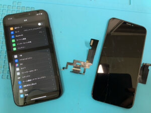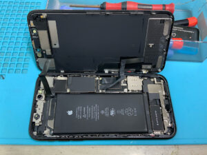 iPhoneXRの修理です。水没により正常に映らない、充電出来ないとの症状でしたが、内部クリーニングと部品交換で無事に復旧!